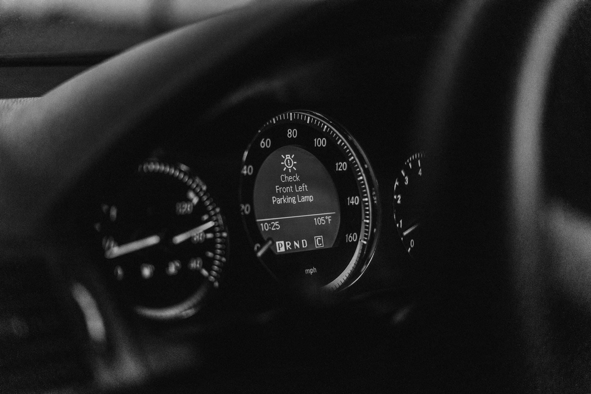 Strona główna Usterki wspomagania kierownicy w Peugeot: objawy, przyczyny i koszty napraw Zbliżenie czarno-białego licznika Peugeot z kontrolką lampki postojowej